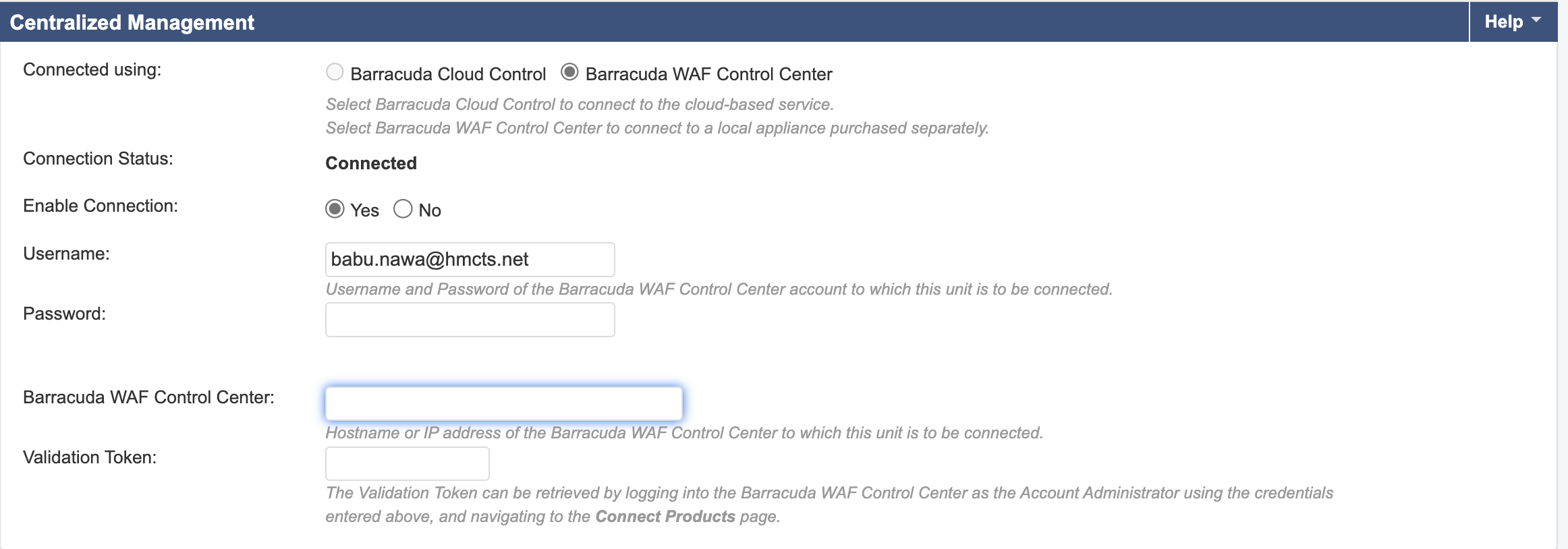 - You should see a confirmation message indicating that the WAF has been successfully connected to the Control Center.