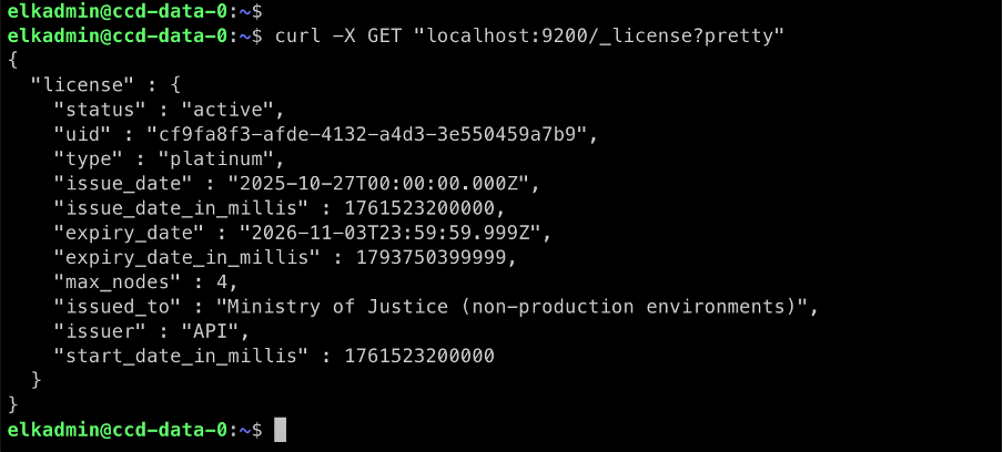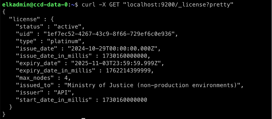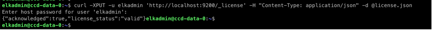 curl -XPUT -u elkadmin 'http://localhost:9200/_license' -H "Content-Type: application/json" -d @license.json
